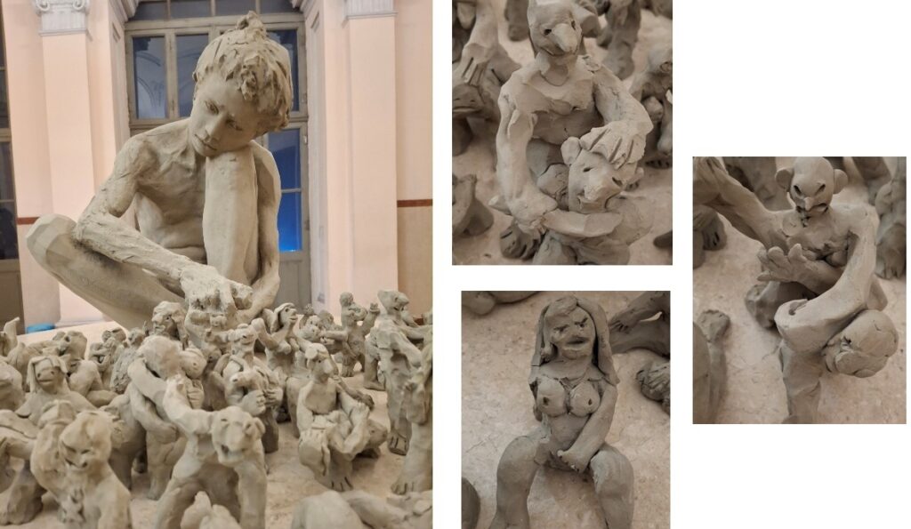 Anche l’installazione “Ri(significare) il #male” teorizza il risultato di un meteorite che colpisce inesorabile la Terra , riempiendo la parte bassa di un’intera ambientazione di magma plastico e la parte aerea di strutture eteree: colma l’astante di timor panico, nell’accezione dannunziana.