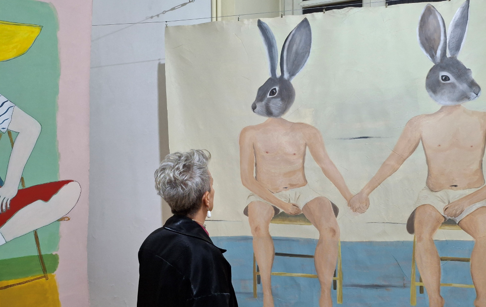 Stefi Pastori Gloss, di spalle, ammira una delle opere figurative (foto di Fabri Megna)